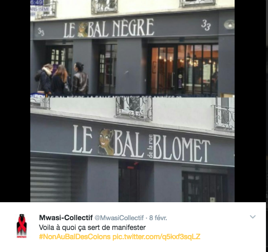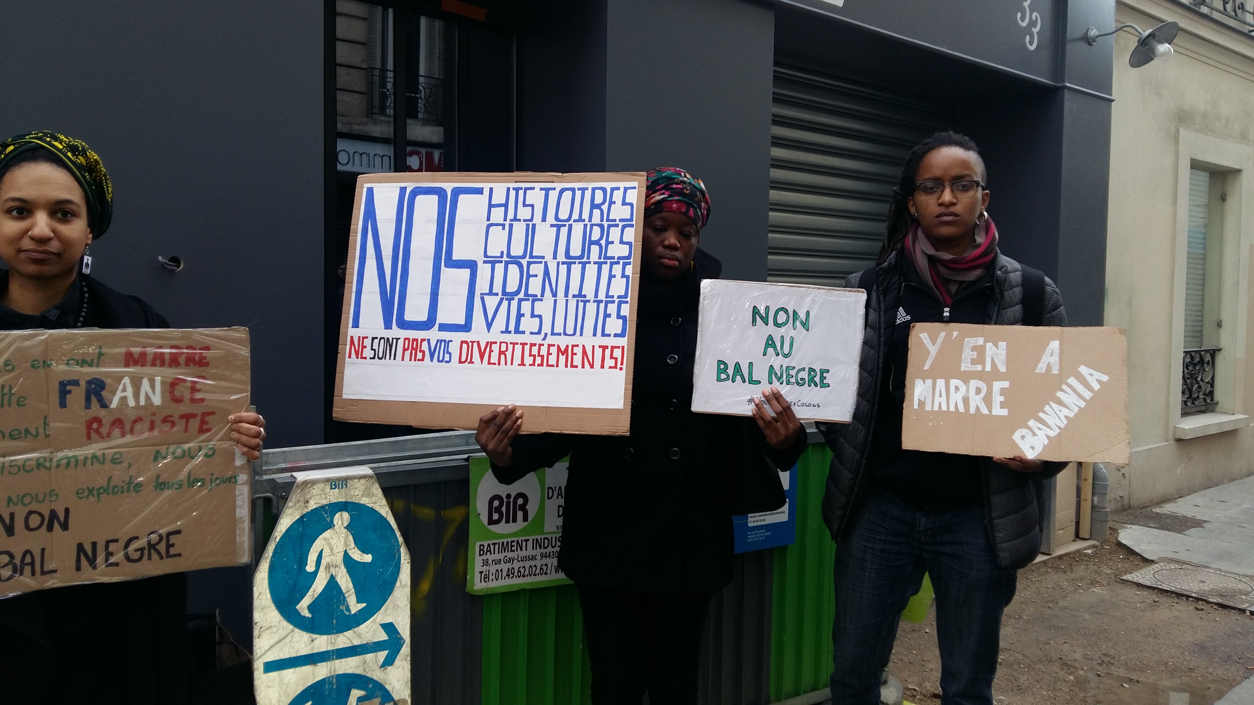 Le 5 février 2017, nous nous sommes rassemblé.e.s devant le bar nommé, "bal nègre" pour manifester contre la normalisation de la négrophobie, et crier notre ras-le-bol de la complicité des institutions officielles.