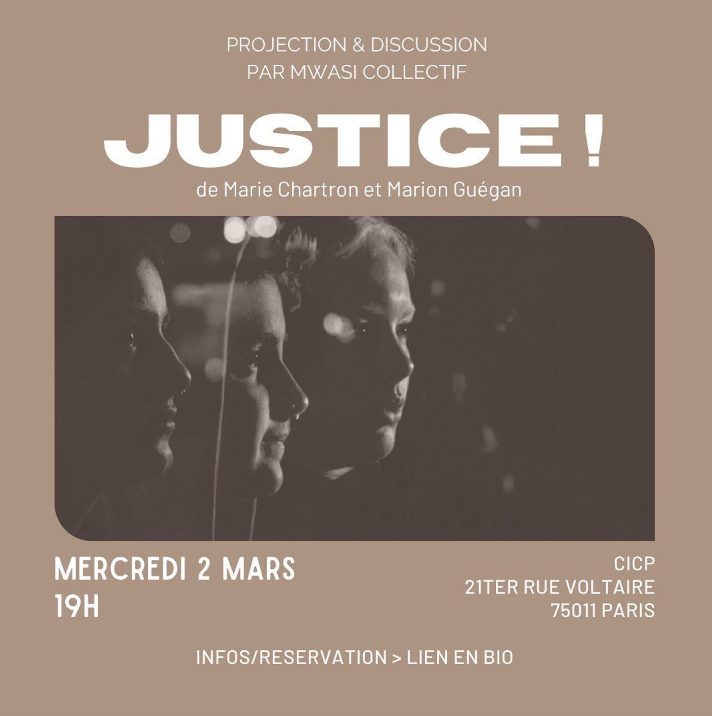 Projection du film JUSTICE!, documentaire en 5 épisodes de Marie Chartron et Marion Guégan, suivie d’une discussion avec le public autour des questions de justice punitive et justice transformatrice.